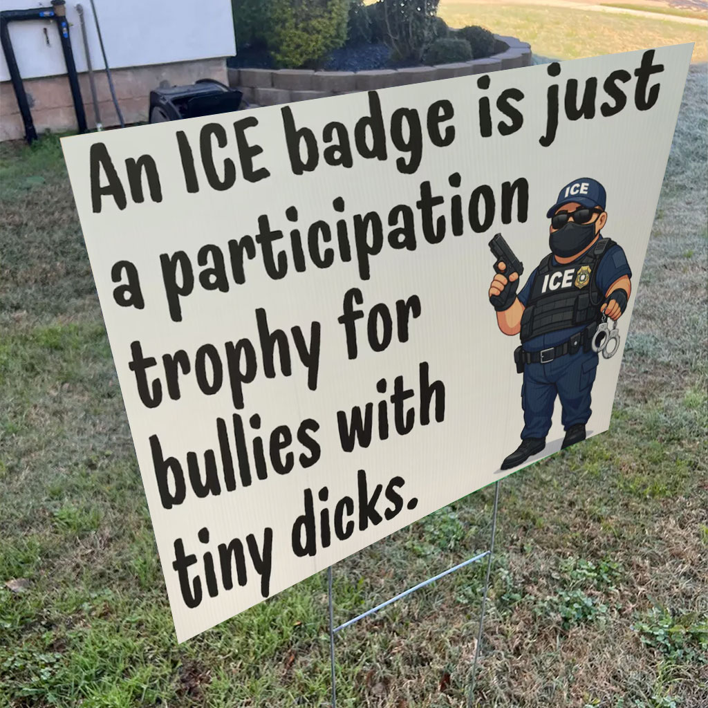 This sign is inspired by nationwide demonstrations and community activism calling for accountability in immigration enforcement, particularly following high-profile cases like the fatal shooting of Renee Nicole Good by ICE in Minneapolis, which sparked protests, vigils, and calls for justice across the United States.